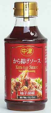 唐揚げの聖地・中津市の「唐揚げ」にかける、「から揚げ専用ソース」。大分特産の柚子胡椒を使用した、ピリ辛スパイー味。から揚げの他、揚げ物いろいろ、ステーキや焼肉のたれ、チキンソテーなどの肉料理に。魚介類にあえるとピリ辛和風マリネに。その他お好みでいろんなものにかけたり混ぜたり。