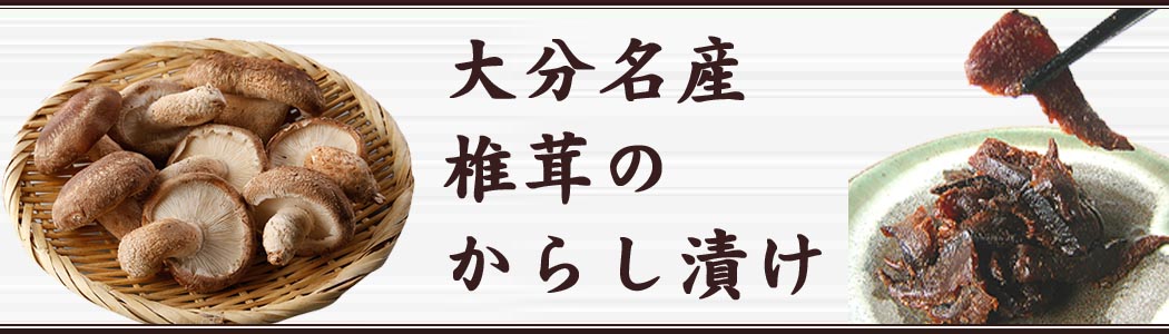 地元・大分県産の椎茸を使用して作った 風味満点のからし漬けです。 肉厚の椎茸の歯ざわりは、地元産ならでは。 ピリッとした辛さは、ご飯にお茶請けに とてもあいます。