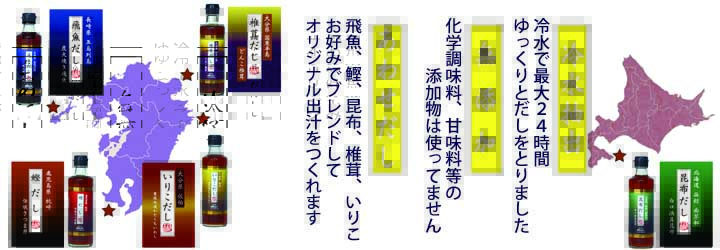 旨味調味料、甘味料等の添加物は一切使用せずに冷水抽出でだしをとりました。深いだし感とすっきりした後味に仕上がってます。